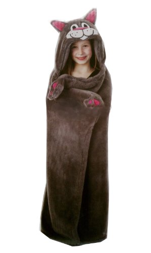 These delightful, lively and colorful throw blankets are unique, because they can actually be worn by your child! Each animal's head is a hood, and when a blanket is wrapped around a little body to create warmth, the paws or feet serve as mittens! Blankets even have tails! 100% polyester. Each blanket measures approximately 40" x 50". Machine wash.