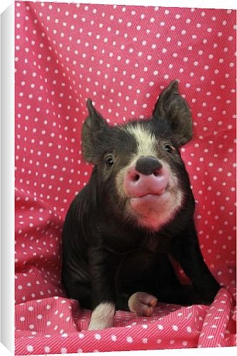 Canvas Prints of JD-21649 PIG. Berkshire piglet sitting on red blanket from Ardea Wildlife Pets Review